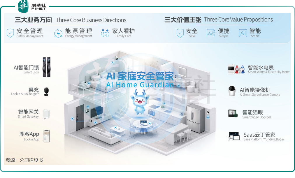 作为全球AI家庭安全管家的开创者,鹿客科技已构建起覆盖安全管理、能源管理、家人看护三大方向的产品矩阵,核心产品包括AI智能门锁、智能水电表、AI智能摄像机、智能网关等,形成了“硬件+软件+AI”的一体化解决方案。