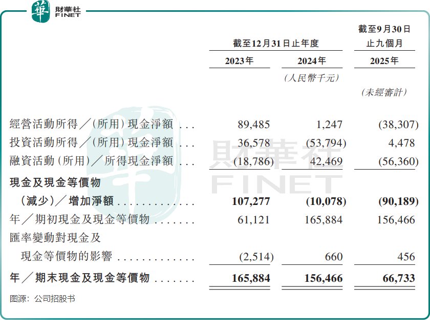 截至2025年9月30日,公司现金及现金等价物余额仅剩6673.3万元,较期初的1.56亿元大幅缩水。现金流的持续恶化,让公司此次港股上市的募资需求显得尤为迫切。