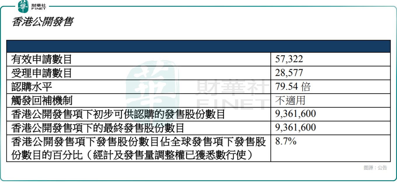 在日前的招股阶段,香港公开发售方面,先导智能获79.54倍认购,公开发售的发售股份最终数目为936.16万股股份,占发售股份总数的约8.7%。合计共获得约57322份有效申请,申购一手获配发股份占所申购股份总数的概约百分比为18%,意味着一手中签率为18%。