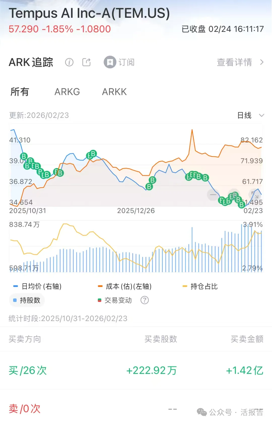 三、Tempus AI:ARK持续加注,段永平首次建仓
