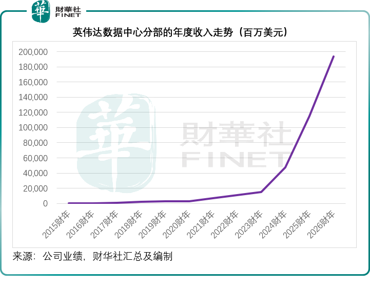 全年来看,英伟达营收按年增长65.47%,至2,159.38亿美元,其中数据中心业务的年度收入达到1937.37亿美元,占其总收入的89.72%,同比增长68.19%。首席财务官(CFO)Colette Kress表示,自2023财年ChatGPT出现以来,其数据中心业务规模已扩大了近13倍,见下图。