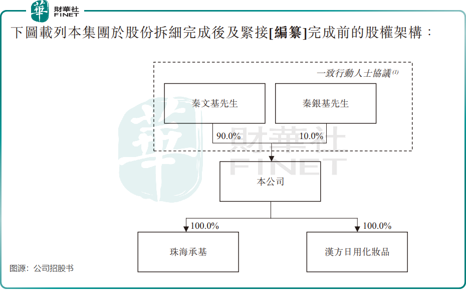 汉方制药的家族企业特质十分鲜明。公司由秦文基、秦银基两兄弟及独立第三方谢军平于2004年联合创立,不过目前,秦文基持股90%,其胞弟秦银基持有10%股权,两兄弟共同掌控公司全部股权,股权结构高度集中,这在冲刺港股的众多企业中实属罕见。