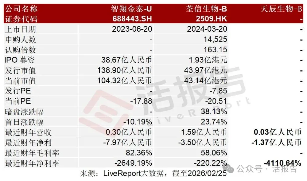 同行业IPO可比公司:智翔金泰-U(688443.SH)、荃信生物-B(2509.HK)
