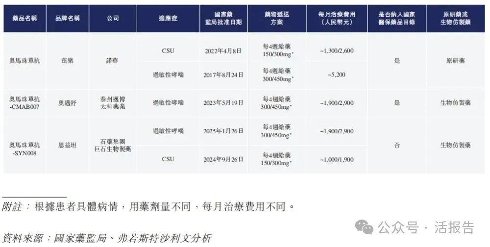 截至最后实际可行日期,三种抗IgE抗体药物已获国家药监局批准,包括一种原研药及两种生物仿制药。