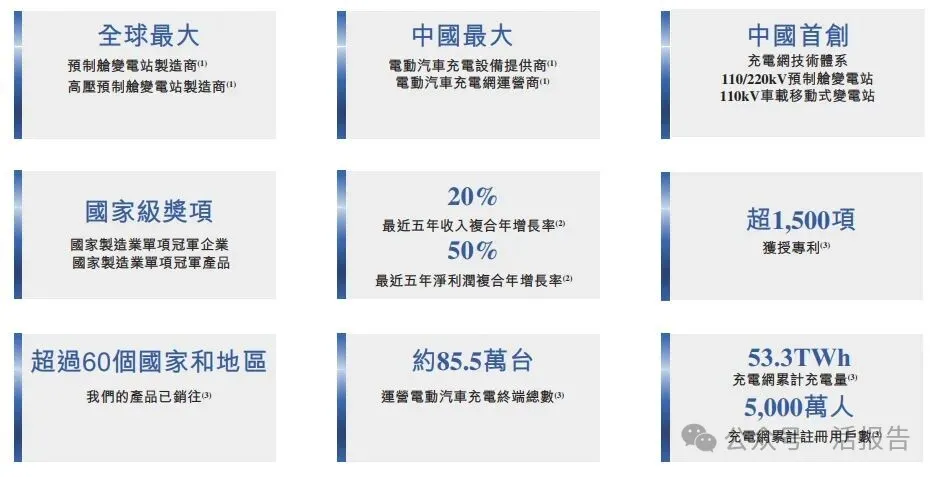 公司是全球最大的高压预制舱变电站制造商与中国最大的电动汽车充电设备制造商及充电网运营商。公司深度参与并推动了新型电力系统的构建,是新型电力系统网络枢纽关键装备的提供者与能源运营者,提升了电力系统的效率、灵活性及可靠性。