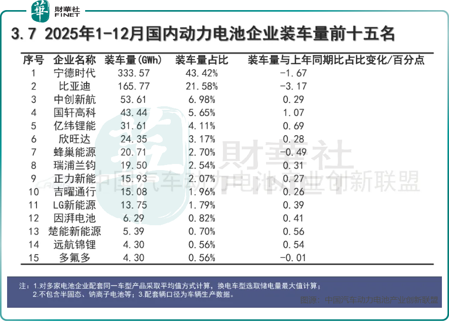在寡头垄断的市场格局下,中创新航的突围显得尤为亮眼。中国汽车动力电池产业创新联盟数据显示,2025年国内动力电池市场中,中创新航全年市占率同比提升0.29个百分点至6.98%,而宁德时代(300750.SZ)(03750.HK)、比亚迪(002594.SZ)(01211.HK)的市占率分别同比下降1.67和3.17个百分点。