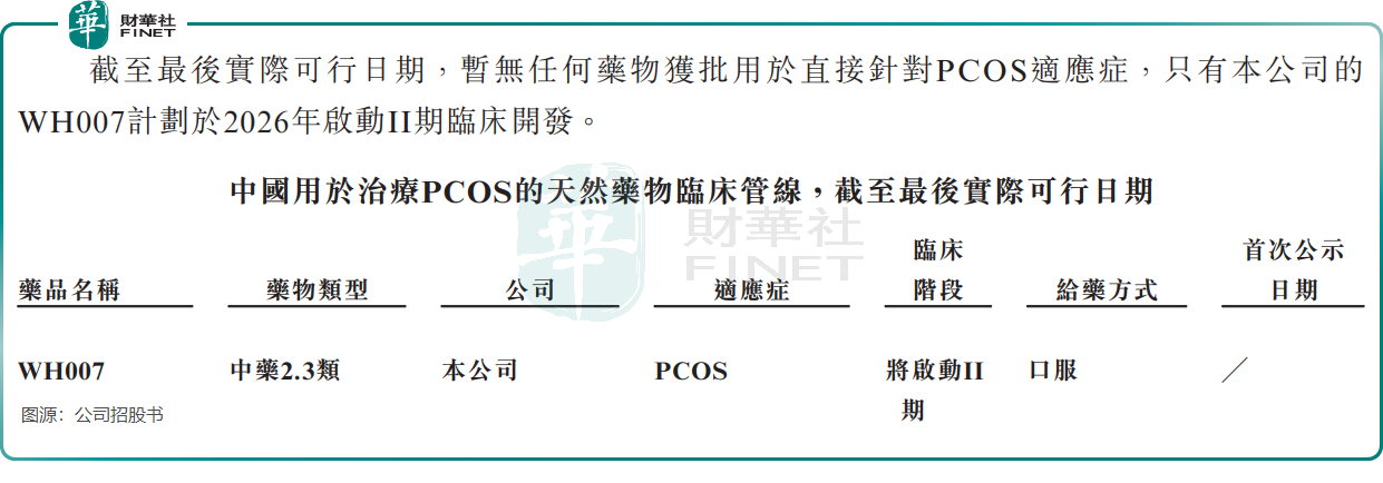 针对PCOS的WH007,是基于桑博恩®原料药SZ-A开发的中药改良型新药,有望填补全球该适应症的治疗空白。PCOS作为育龄女性常见的生殖内分泌疾病,中国患病率约7.8%,患者达3440万人,但目前全球尚无专门针对该适应症的获批药物,现有疗法多为对症治疗,难以满足患者自然受孕的核心需求。