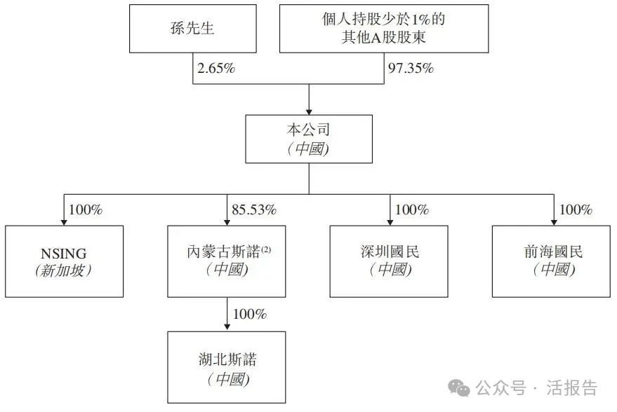 公司董事长、执行董事兼总经理孙先生持股公司约2.65%股份,为单一最大股东。个人持股少于1%的其他A股股东合计持股约97.35%。