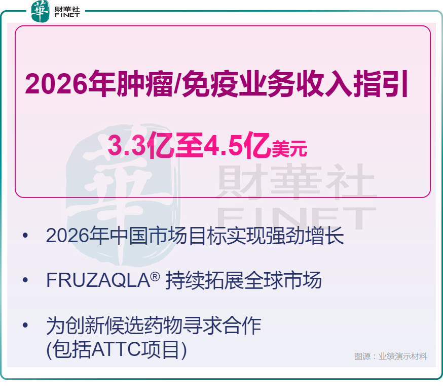 和黄医药称,2026年肿瘤/免疫业务综合收入的全年指引在3.3亿美元至4.5亿美元之间,反映了和黄医药中国商业营运的持续增长势头、FRUZAQLA®在全球范围内的持续商业扩张,以及创新候选药物新的合作机会。