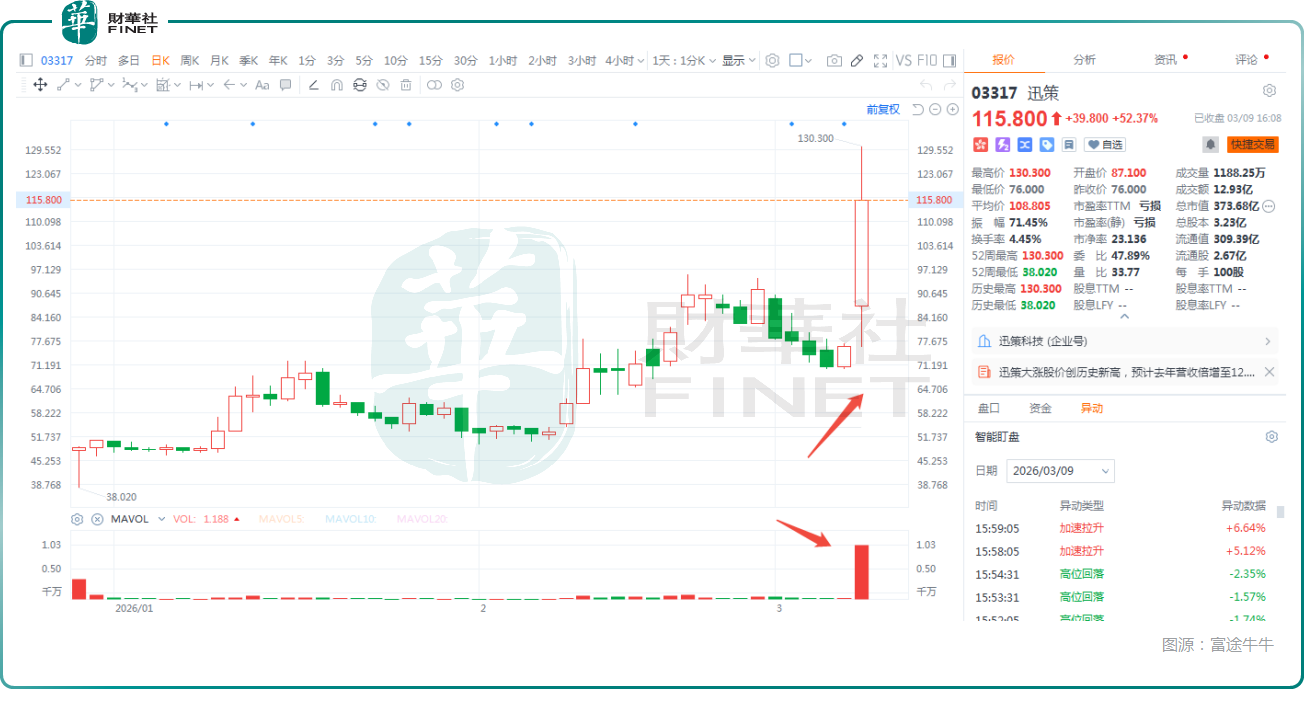 此次迅策被纳入港股通名单,也标志着资本市场对公司长期价值的认可,并打通了内地与香港市场的双向投资通道,有望提升其估值与流动性。这一点也体现在了迅策的成交量上,3月9日其成交额大幅飙升至12.93亿港元,远超此前。