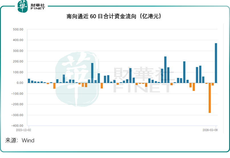 2026年3月9日,港股南向通迎来历史性资金流入,当日周合计净流入额高达372.13亿港元,其中沪市港股通贡献260.64亿港元,深市港股通净流入111.49亿港元,单日巨量净流入不仅打破近期市场资金流向平淡的格局,更成为港股市场在地缘动荡期的一抹亮色。但透过单日暴涨的表象,南向资金的整体流向却暗藏极致分化,释放出市场情绪反复、资金博弈加剧的信号。