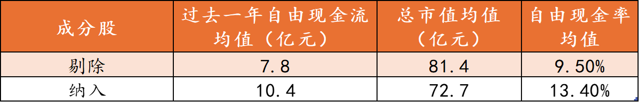对比剔除和纳入的个股,发现指数能自动实现“高抛低吸”,前期涨幅较大、占比超过10%的个券或自由现金流率较低的将被调低权重或剔除,纳入造血能力更强、更有潜力的成份股!