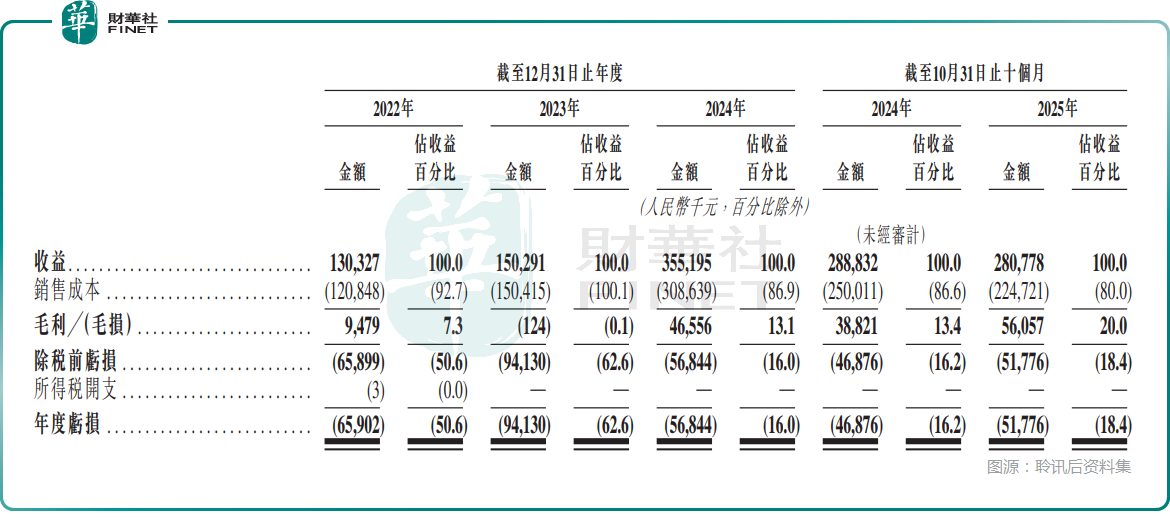 不过,2022年至2024年及2025年前十个月,其毛利率分别为7.3%、-0.1%、13.1%、20.0%,修复态势明显。