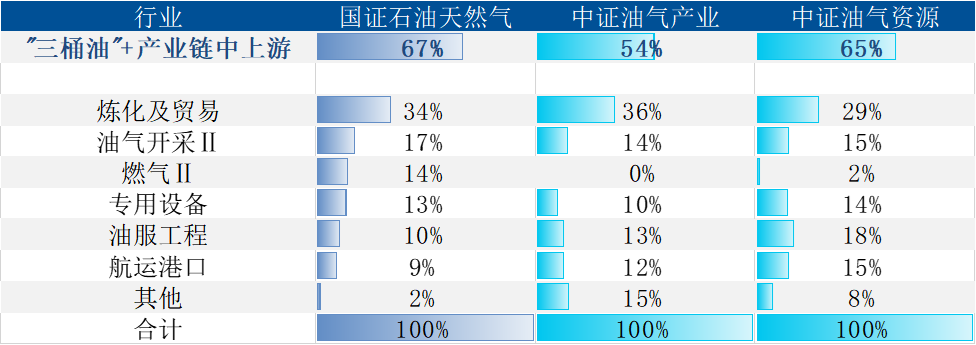 表:国证石油天然气指数中产业中上游及“三桶油”等资源类标的含量更高