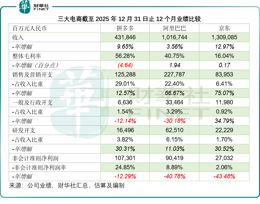中国电商行业正式迈入存量竞争深水区。当用户红利和流量增量双双触及天花板,三家平台头部玩家——拼多多(PDD.US)、阿里巴巴(09988.HK)与京东(09618.HK),公布了表现各有差异的2025年12月财季答卷。