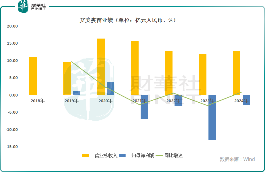 数据显示,多年来艾美疫苗的收入呈现明显波动,而利润端则在近年连续亏损,其中2024年归母净利润亏损2.77亿元(人民币,下同)。