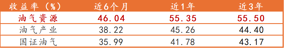 (3)指数更具弹性、表现更优:得益于中证油气资源指数纯正的编制方案,该指数最近六个月、一年、三年的累计收益在同类指数中领先。
