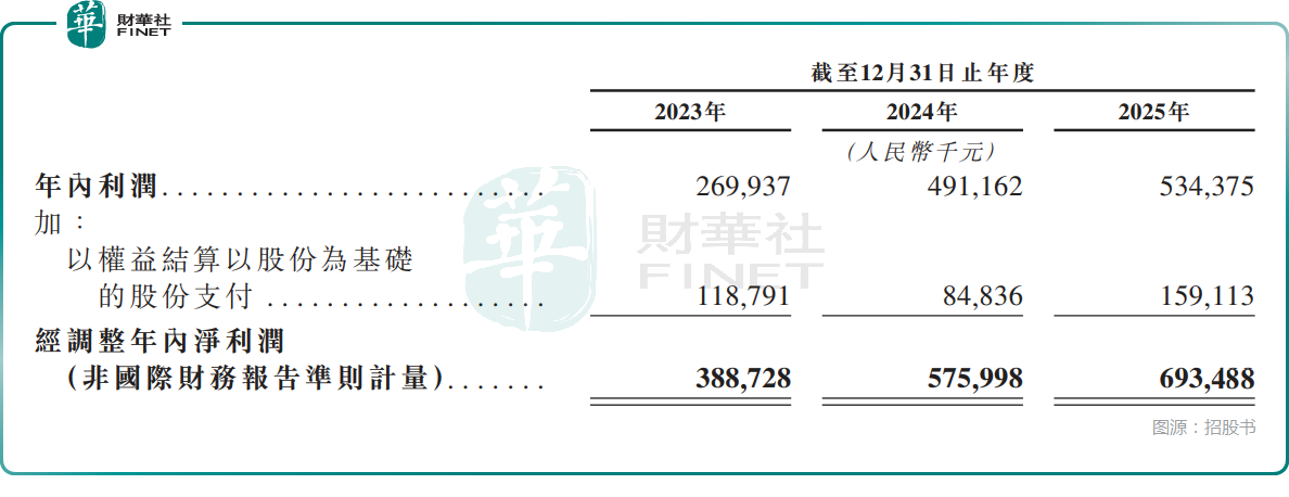 其中于2023至2025年,公司收入分别为26.16亿元、33.47亿元、38.98亿元,复合增长率达22.1%;年内毛利率分别为44.9%、47.2%、46.2%,经调整净利润分别为3.89亿元、5.76亿元、6.93亿元,连续实现稳健盈利。
