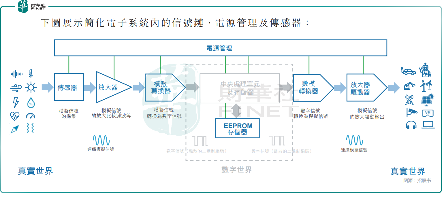 截至2026年3月22日,公司拥有超过6800种模拟集成电路与传感器产品。其中,(i)19个品类为信号链产品,覆盖了从信号采集、调理到转换和传输的整个信号路径,包括放大器、比较器、模拟开关、数据转换器及EEPROM等,(ii)17个品类为电源管理产品,包括DC/DC转换器、低压差线性稳压器(LDO)、AMOLED电源芯片以及锂电池充电与保护芯片等,及(iii)传感器涵盖2个品类,包括温度传感器和磁传感器。