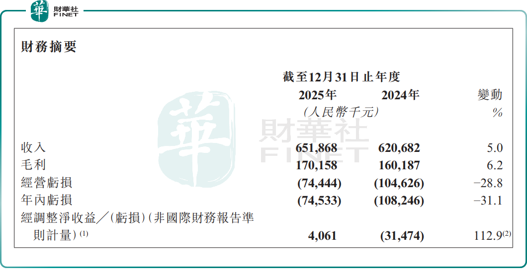 财报显示,2025年,健康160收入为6.52亿元(单位人民币,下同),同比增长5.0%;受上市相关一次性费用等因素影响,公司年内亏损7453.3万元,但亏损同比收窄约31.1%。公司经调整收益约406.1万元,实现扭亏为盈。