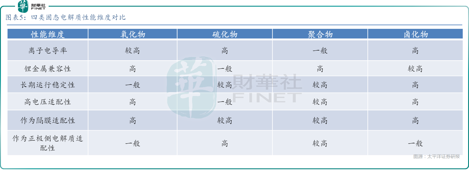 其中,硫化物材料(如LPS类)因具备高离子电导率和界面适配性优势,被视为实现高性能固态电池的最优选,但面临空气稳定性与制备工艺挑战;氧化物材料(如LLZO)具有较好稳定性和安全性,在汽车场景下工程落地路径清晰;聚合物电解质则主要面向中低温场景,量产路径最为成熟。