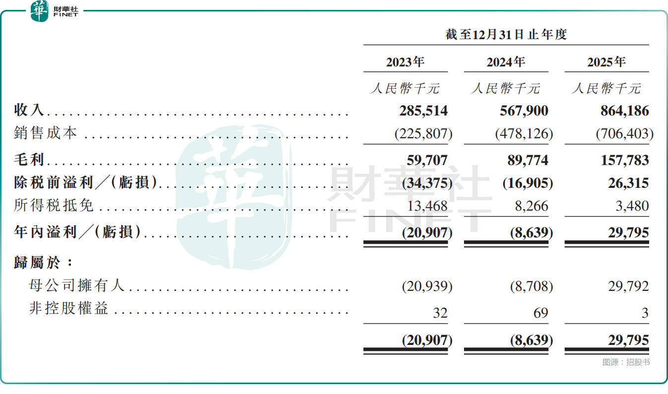 数据显示,2023年至2025年,公司收入如同坐上了火箭,从2.86亿元(人民币,下同)一路飙升至8.64亿元,年复合增长率高达74.0%。