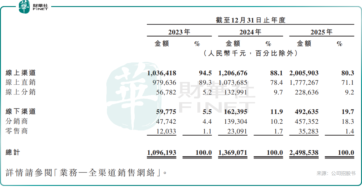 对比来看,冷酸灵母公司登康口腔(001328.SZ)过去几年增长表现远逊于小阔科技,两面针(600249.SH)更是陷入增长停滞。这一差距的核心,在于小阔科技对线上渠道的极致押注。截至2025年末,公司线上渠道收入占比高达80.3%,其中抖音、快手(01024.HK)等内容电商贡献了超过六成的营收,是绝对的增长引擎。