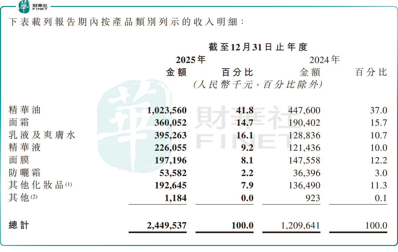 按零售额计,其爆款大单品——山茶花抗皱修护精华油2014年推出以来累计销售逾5500万瓶,连续12年稳居全国面部精华油产品榜首,是支撑公司业绩的核心支柱,也是其在“以油养肤”赛道立足的关键竞争力之一。