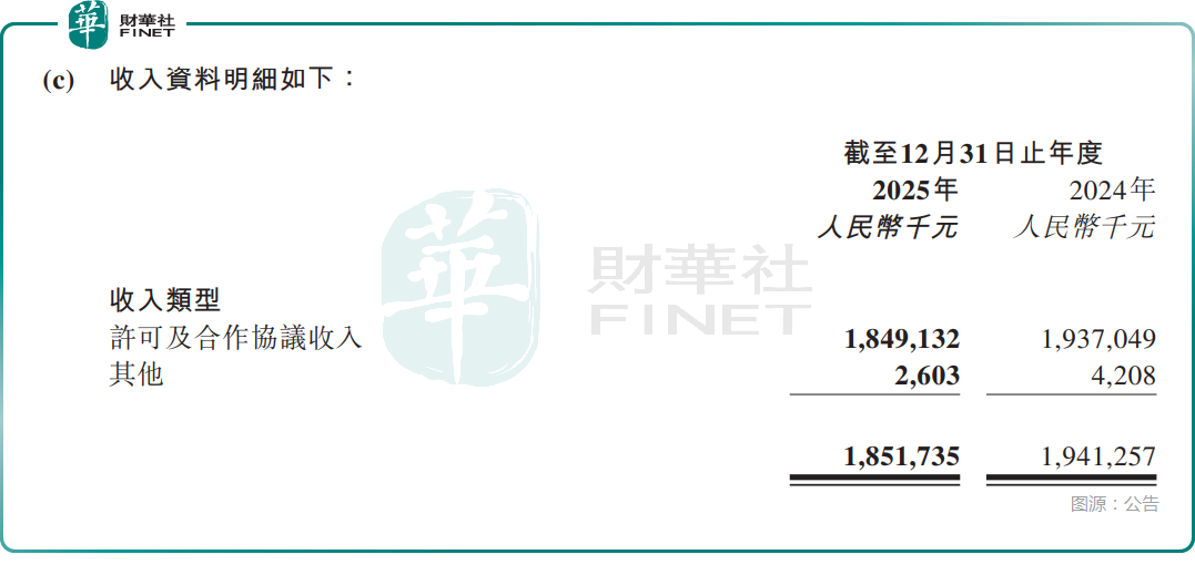 根据2025年业绩报告,2024年、2025年的收入几乎都来自许可及合作协议收入。