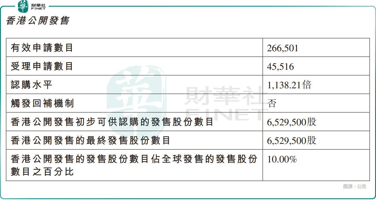 从日前招股阶段的表现来看,香港公开发售方面,长光辰芯获1138.21倍认购,公开发售的股份最终数目为652.95万股,占发售股份总数的10%。合计获得约26.65万份有效申请,受理申请数目约4.55万份,一手中签率仅1%。