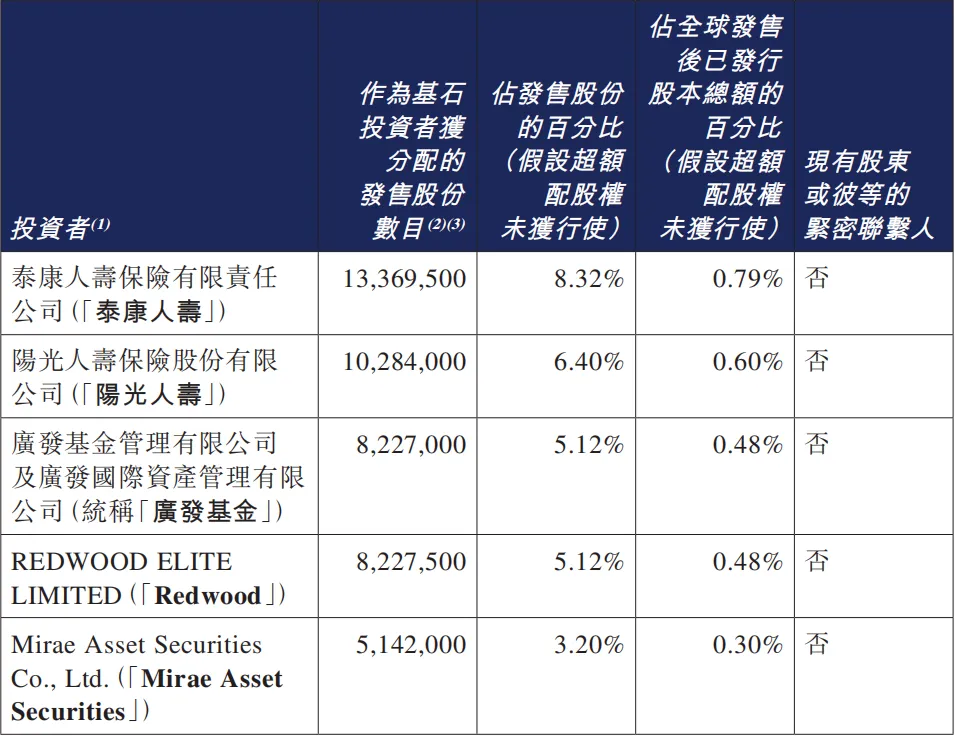 公司本次全球发售1.61亿股(不含超配权),招股定价7.620港元。发行比例为9.45%,募资总额约12.24亿港元,采用机制B分配方式,公开发售占10.00%。国配部分引入了9家基石投资者,认购约4.55亿港元,占全球发售的37.12%。