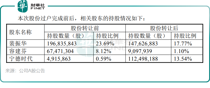 两家公司的渊源可以追溯到2015年。彼时,天华新能创始人裴振华通过旗下宁波联创收购了宁德时代15%的股权。2018年,双方共同成立天宜锂业;2025年11月,宁德时代再度加码,以26.35亿元完成受让裴振华夫妇所持12.95%股份,累计持股达13.54%,跃升为天华新能第二大股东。