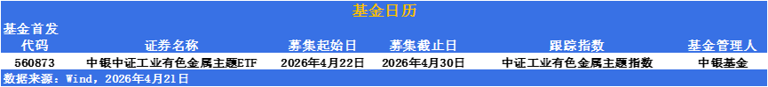 ETF发行市场方面,中银中证工业有色金属主题ETF明日开募集