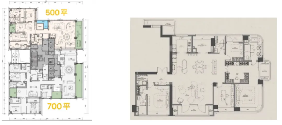 图:深圳湾澐玺户型图(左)、安澜上海户型图(右)