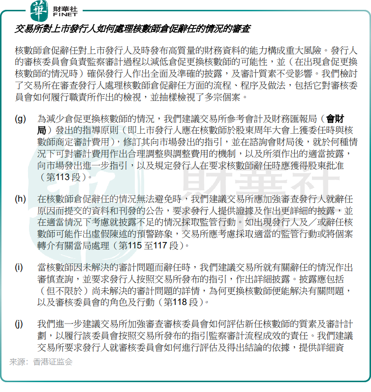 香港证监会还指出,核数师仓促辞任对上市发行人及时发布高质量的财务资料的能力构成重大风险。