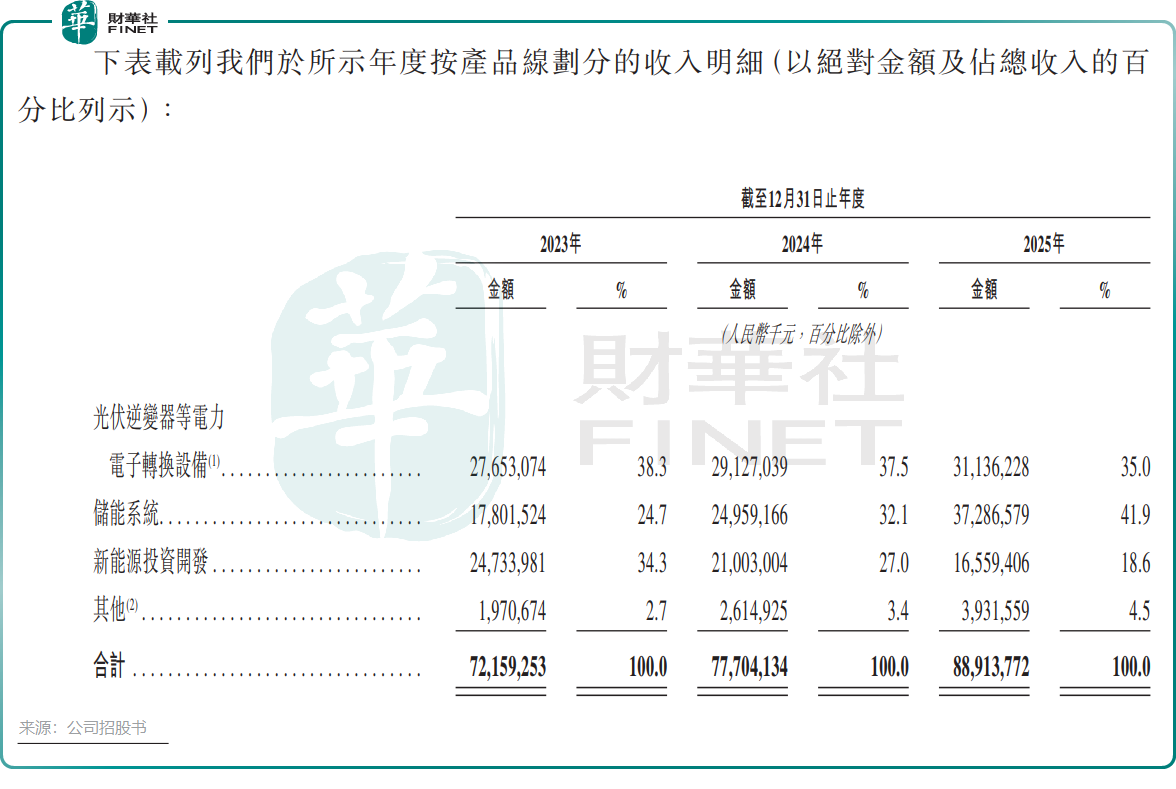 阳光电源的业务结构正呈现出明显的分化,2025年,储能系统以372.87亿元的营收规模,首度超越光伏逆变器业务的311.36亿元,以41.9%的营收占比正式成为公司第一大业务板块。前者同比增长近50%,而后者增速仅约7%。
