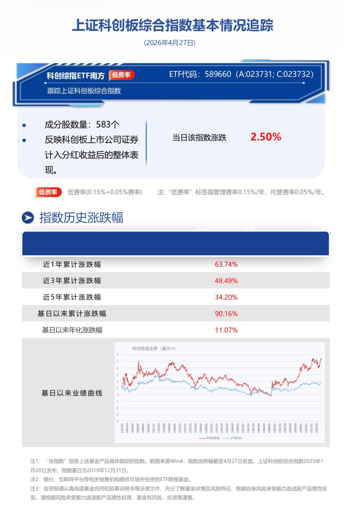 截至2026年4月27日收盘,科创综指ETF南方(589660)换手12.96%,成交0.61亿元,跟踪标的指数上证科创板综合指数(000680.SH) 涨2.50%。