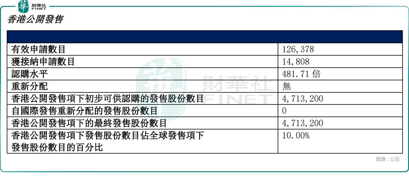 从日前招股阶段的表现来看,香港公开发售方面,迈威生物获481.71倍认购,公开发售的股份最终数目为471.32万股,占发售股份总数的约10%。合计获得约12.64万份有效申请,受理申请数目约1.48万份,一手中签率为1.00%。