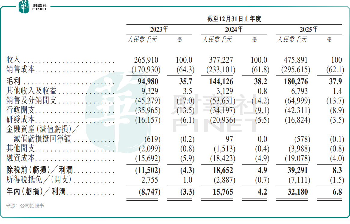 财务数据上,这种模式的转型效应正在显现。在中国本土前五大同行中,公司的收入增长率排名第一,2023年至2025年收入从2.66亿元(单位人民币,下同)增长至4.76亿元,复合年增长率达33.8%。