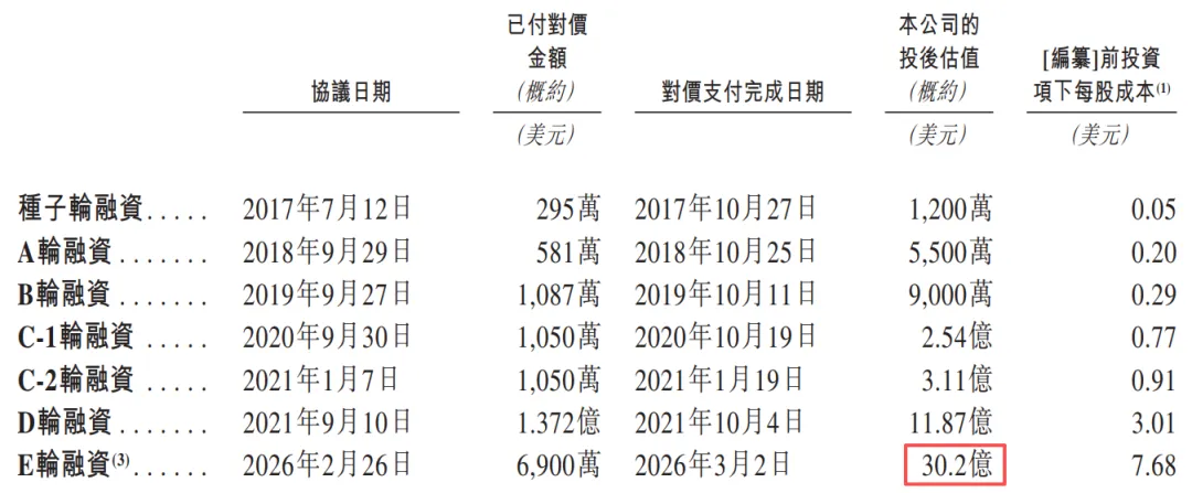 公司上市前经历了多轮融资,累计融资逾1.23亿美元。在2026年2月的E轮最新融资中,公司的投后估值约为30.2亿美元。