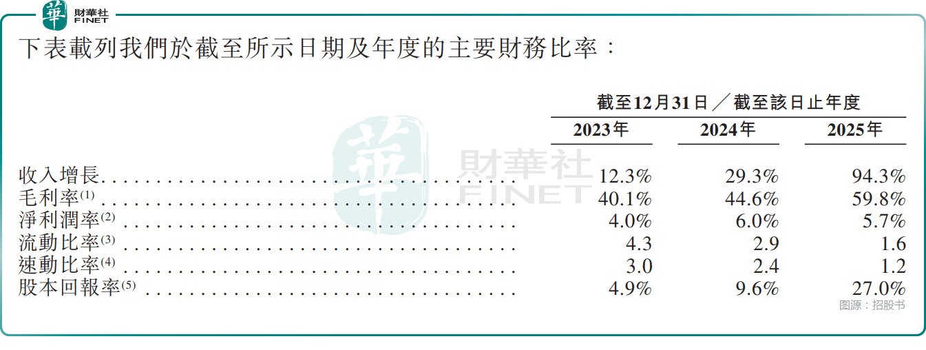 数据显示,若羽臣的总收入由2023年的13.66亿元增至2025年的34.32亿元,期间年复合增长率为58.5%,年度净利润则由2023年的5429.0万元增至2025年的1.94亿元,期间年复合增长率为89.2%,毛利率也从40.1%连续提升至2025年的59.8%。
