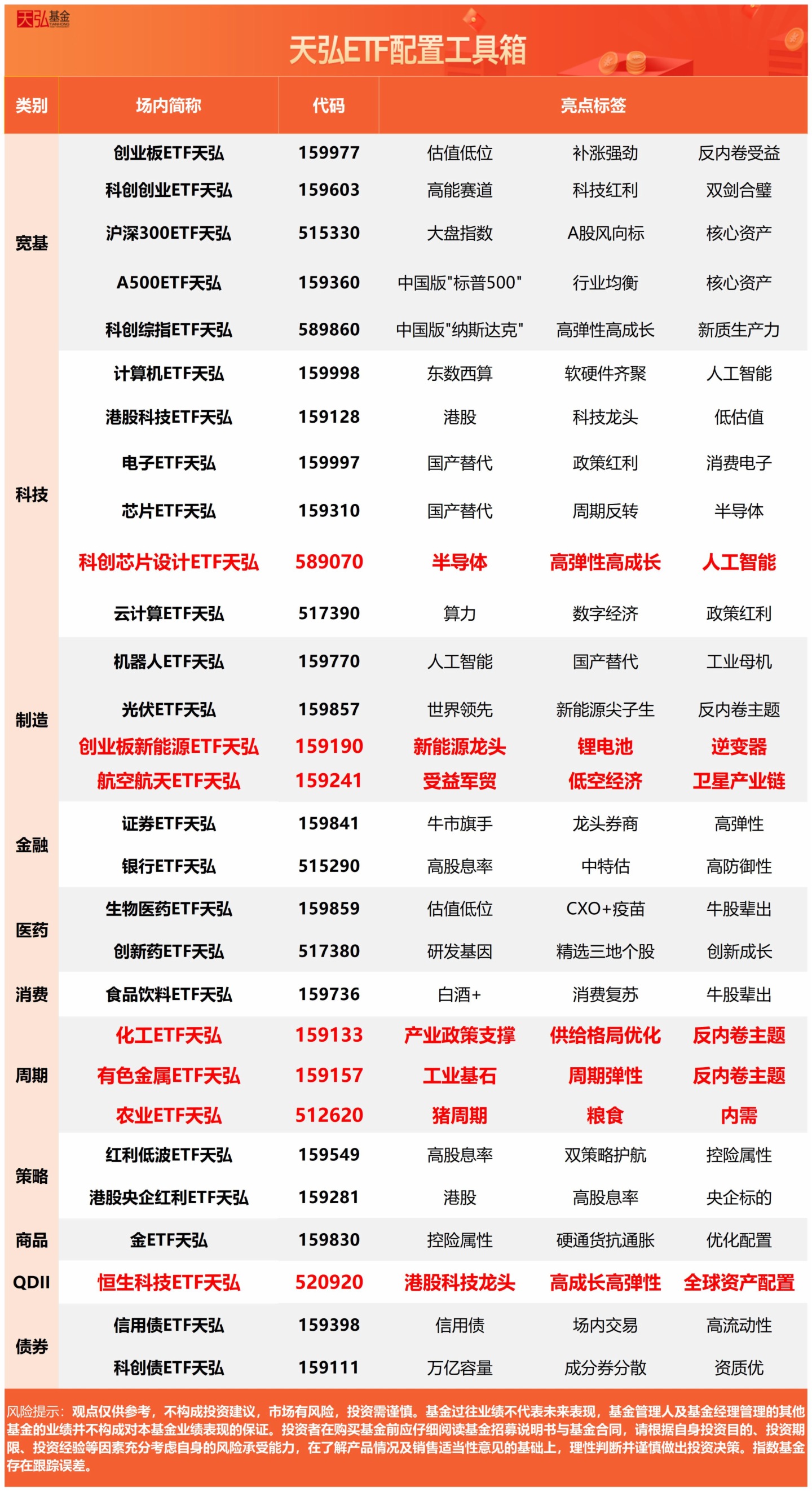 食品饮料ETF天弘(159736),场外联接(天弘中证食品饮料ETF联接A:001631;天弘中证食品饮料ETF联接C:001632)。
