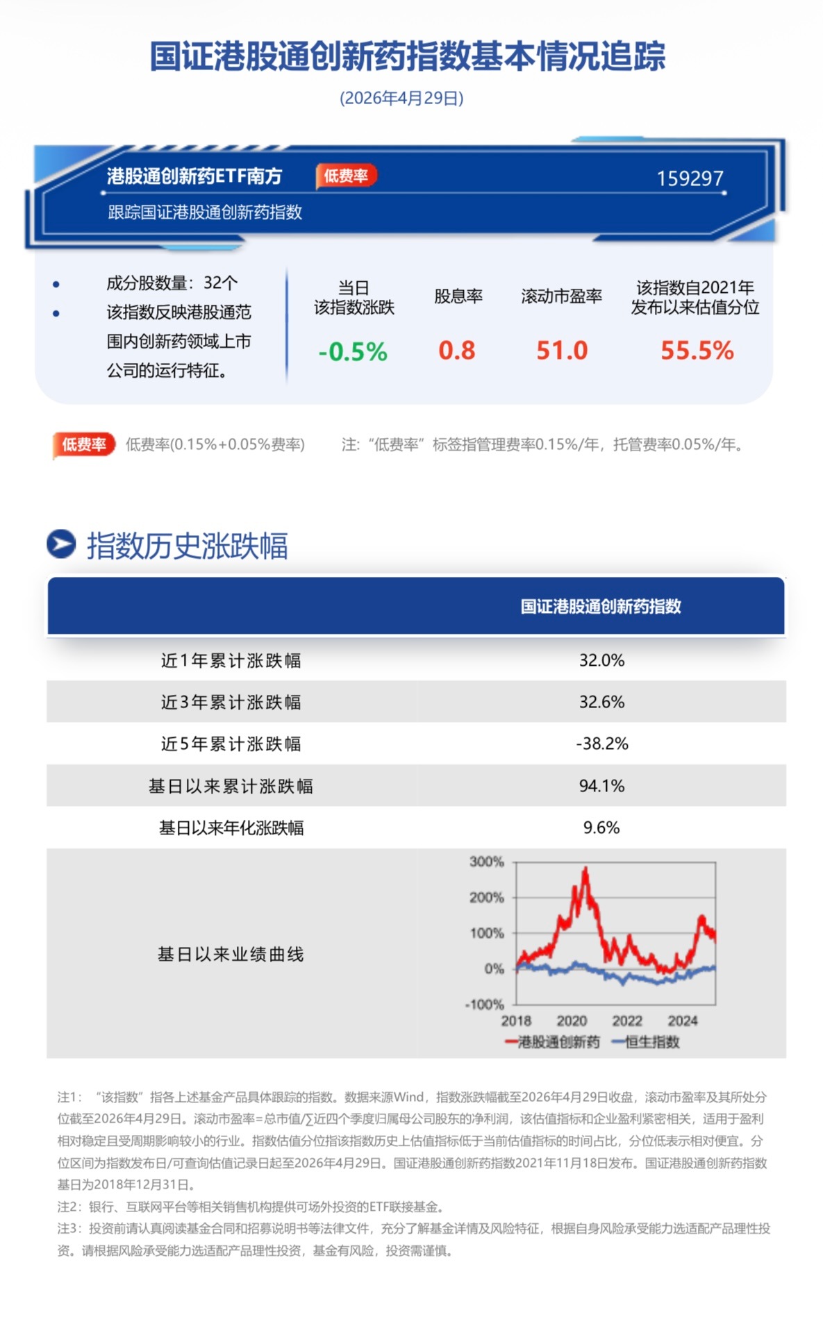 4月29日,港股创新药板块窄幅震荡。截至收盘,国证港股通创新药指数报收1940.96点,微跌0.46%。虽然指数短期下跌,但拉长时间维度来看,资金对该板块的配置趋势仍然明显偏积极。以南方基金旗下港股通创新药ETF南方(159297)为例,近20个交易日,159297份额增加6.45亿份。截至4月29日,其较2025年12月31日的18.19亿份增长至28.38亿份,年内份额增长56.01%,规模由14.30亿元增长至22.49亿元,增幅57.24%。